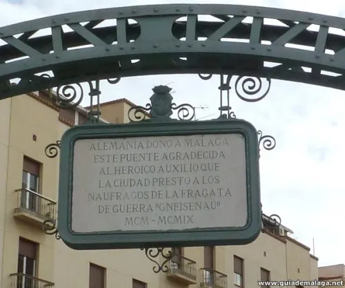 Para finalizar, en una placa se puede leer: “Alemania donó a Málaga este puente agradecida al heroico auxilio que la ciudad prestó a los náufragos de la fragata de guerra Gneisenau».